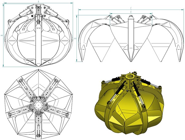 Grab for materials with piled density up to 0,6 t/m³